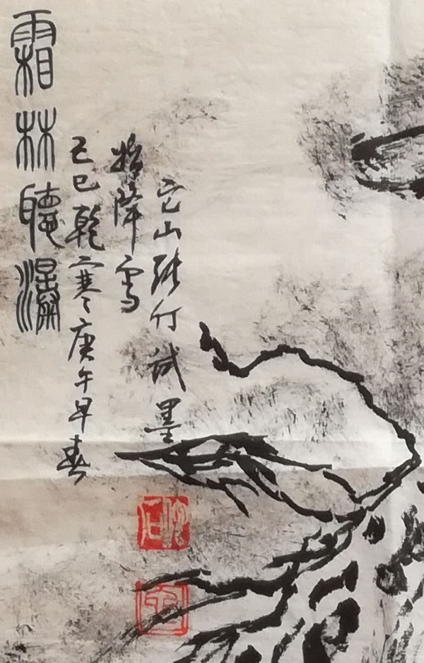 核心提示:张仃,被认为是美术界少有的集国画家、漫画家、壁画家、书法家、工艺美术家、美术教育家、美术理论家等众多身份于一身的一位艺术大家。纵观张仃的艺术生涯,无论是漫画、壁画还是装饰性绘画,都是间断性地从事,有些甚至是不得已而为之,唯有中国画这条脉络,是张仃一生一以贯之的事业,而张仃晚年对于焦墨山水的探索,也将他的艺术生涯推向了顶峰。下面为名人字画网收藏的张仃焦墨山水画《霜林听涛》。4尺。款识:霜林听瀑。己巳乾寒,庚午早春始降雪,它山张仃试墨。1989年作。未装裱。手机简单拍照,图片未经任何艺术处理。