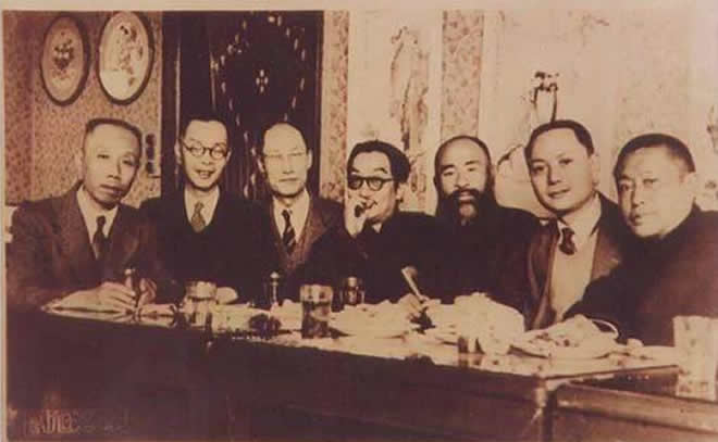 右起:郑午昌、张充仁、张大千、吴湖帆、许士祺、汪亚尘、颜文樑