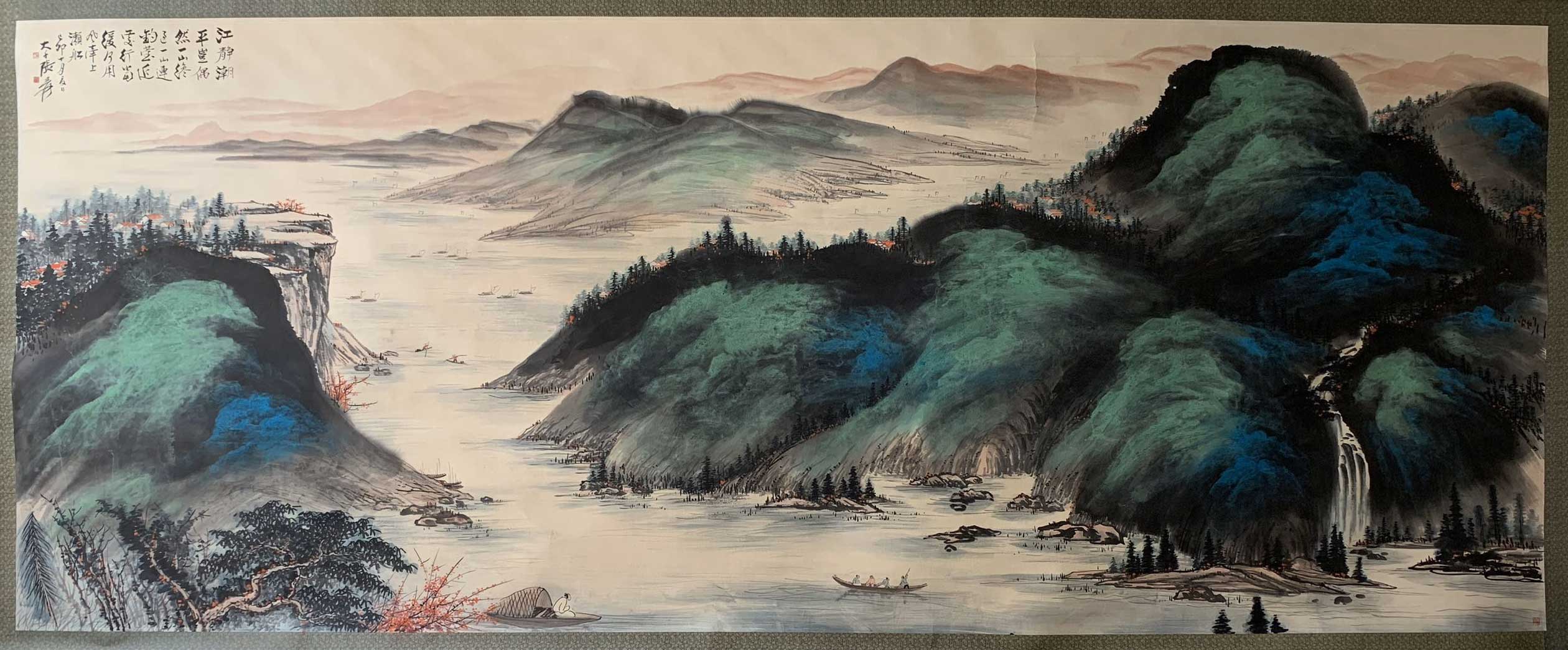 未经允许不得转载:名人字画网 » 张大千丈六泼彩巨制《江静潮平图》,问鼎之作