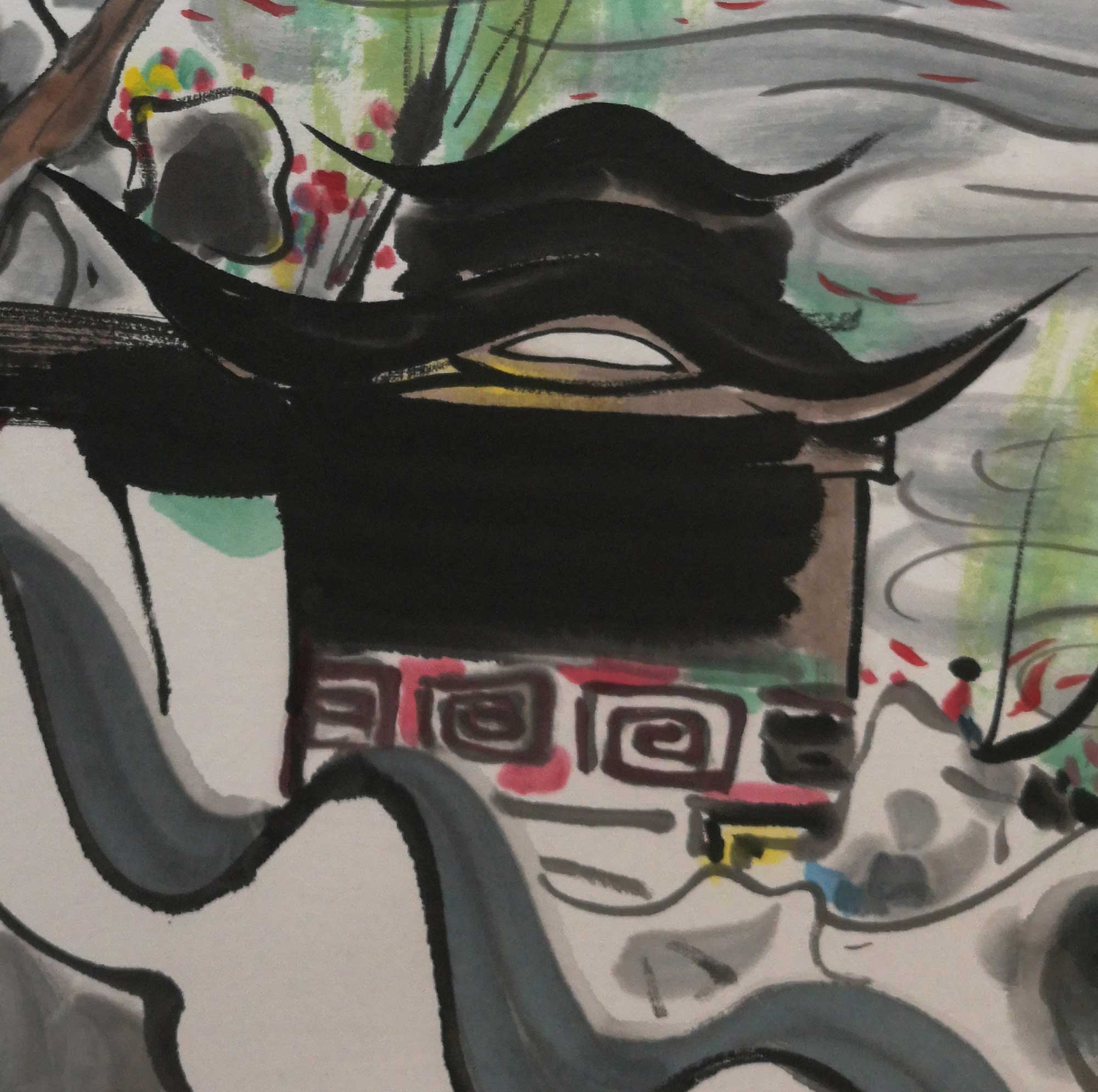 二十世纪七十年代中期,吴冠中在油画创作之余又开启了水墨画的探索。在最初的几年中,他的水墨创作还未摸索出属于自己的风格,语言上尚有较多油画的痕迹。八十年代以后,吴冠中在水墨领域的深耕日见成熟,并开始将水墨的写意元素和油画的抽象形式相互融合,凭借点、线的疏密交错等关系将物象的块面、容量、深度等效果呈现出来,用虚实相生、变幻莫测的色线交织构建出一个充满想象力和激情的全新视觉空间,其中的线条不拘一格,自由奔放,色彩则具壮游天地般的不羁与豪放。