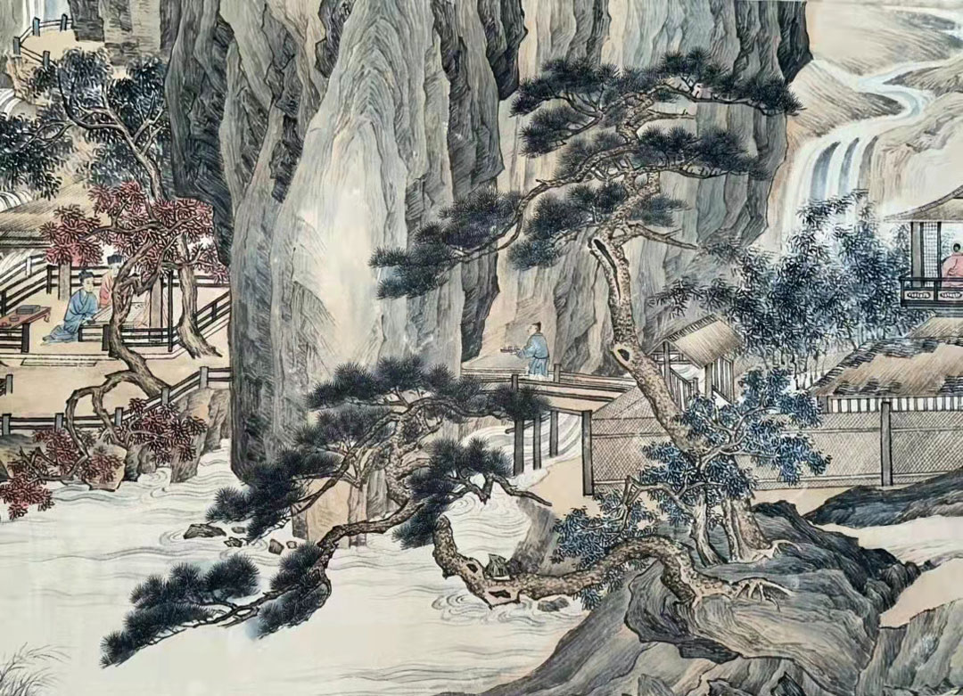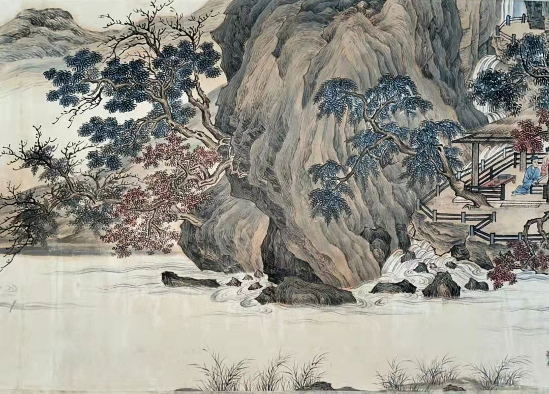 明中叶江南地区经济高度发达,南京、苏州一带山明水秀,大量的官员富豪及文人艺士构筑园林别业成为一时风尚,其中有些学养较高的园主便邀请著名书画家以画笔来描述园林的景致及主人的理想生活状态,颇有『立此存照、以遗后世』的意味。明代是中国古典园林艺术发展的重要时期,尤其是江南私家园林的兴盛,与山水画、文人审美深度融合,形成了独特的『园林山水』文化。科举失意文人更通过园林寄托山水之志。卷中亭台、楼阁、水榭、书斋与自然山水融为一体,体现《林泉高致》中『山水有可行可望,有可游可居』的审美追求。这些,从此卷可见一斑。此为传统山水画与园林艺术交融的巅峰之作。