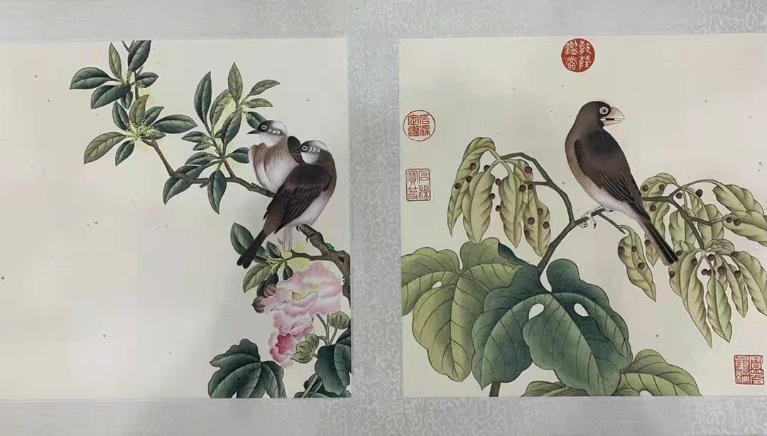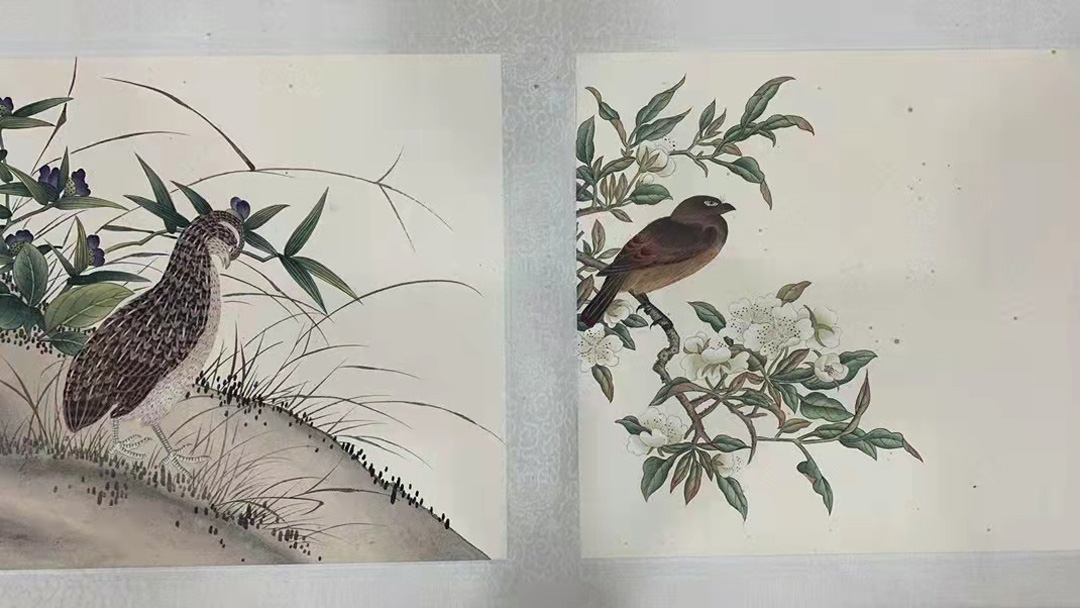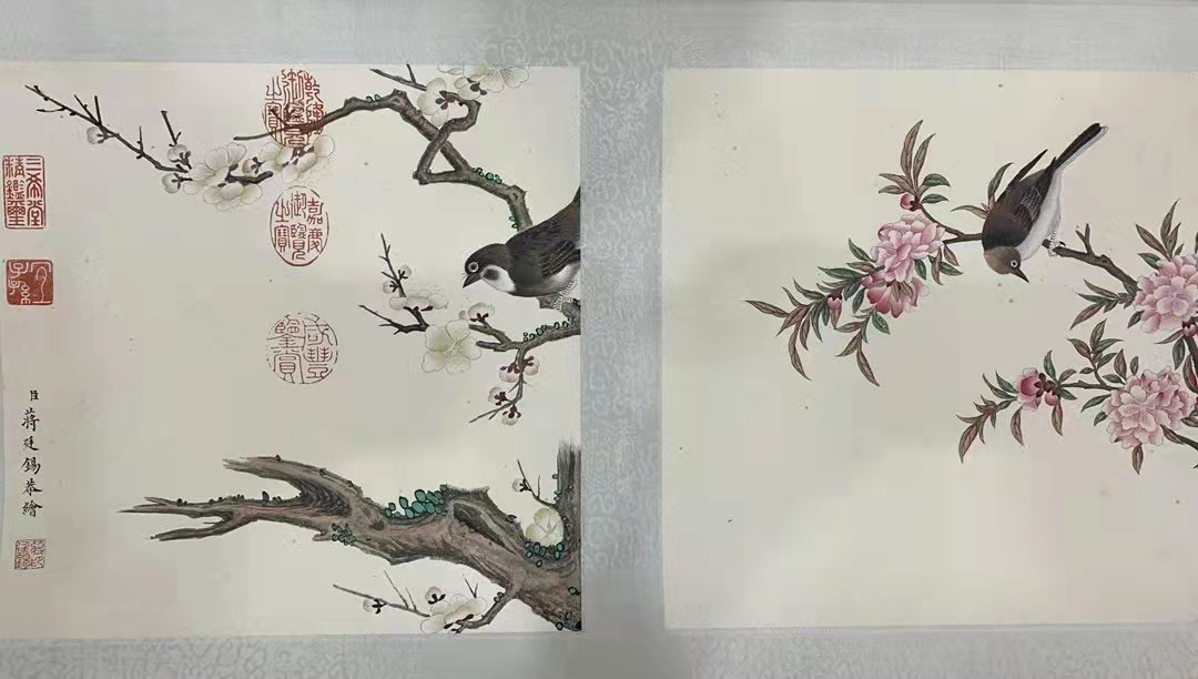 此卷中所绘禽鸟皆工笔重彩,先以柔韧连绵的线条塑其形貌,又以短细笔触刻画其背部、腹部不同的毛羽质感,并以深浅不同的色调,表现羽毛或厚重或轻薄的质感,最后以高光点睛,使之更具生姿。背景中折枝花木的巧妙穿插,亦为画面增添生态空间的真实感。这种结合了传统笔墨法、西方光影法和恽寿平“没骨法”的表现形式,同见于蒋廷锡其它相关作品中。此作不但展现了清代宫廷的审美、技法与表现特色,亦体现出清代朴素生物学的观察、思维与表达特征,可谓兼具艺术欣赏和生态史料之双重价值,尤显珍贵。