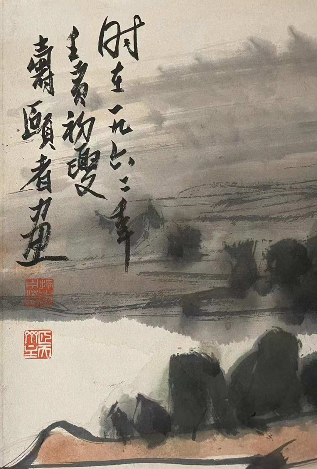 1.时在一九六二年,壬寅初夏,寿颐者画。印文:宁海天授之印、颐天斋主。
