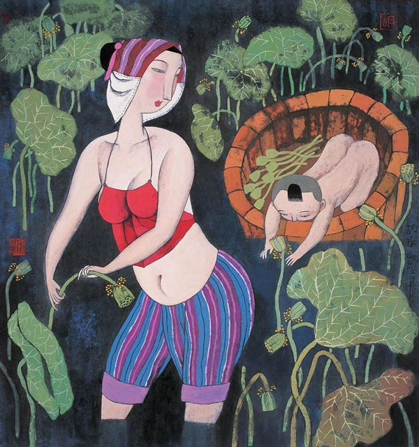 未经允许不得转载:名人字画网 » 胡永凯重彩画作《采莲曲》
