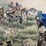 早在2013年12月,在北京保利的秋季拍卖会上,一幅黄胄描写新疆少数民族马上较力活动场面的丈二巨制《欢腾的草原》以1.288亿元成交,该成交价创造了黄胄作品的最高拍卖纪录。下面从藏品中甄选诚献同样是黄胄表现马上较力活动场面及雪山脚下放牧场景的近百平巨制《秋原放牧图》,以飨藏家。2...