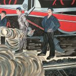 工业题材美术作品只产生在两个时期,一是解放初期,改造中国画,到工厂、农村进行写生时期,第二个时期就是文化大革命,强调绘画要为政治服务、为工人、农民服务。下面从本人藏品中精选呈献魏紫熙版1975年作丈二巨制《机车大夫》,就是用中国画直接表现工业题材的典型。老装老裱。143×356c...
