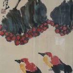齐白石弟子崔子范(1915-2011)先生是著名的中国花鸟画大家,擅长大写意花鸟画,创作善于吸取众家之长,在继承传统的基础上创新。下面为本站藏品,崔子范充满喜庆之气且富有装饰性的作品《天竺双鸟图》,4尺。2003年作品。手工装裱。手机简单拍照,图片未经任何艺术处理。 本站藏品 款...