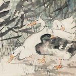 徐悲鸿善于描绘普通家禽,鹅是传统中国画中少见的题材,而徐悲鸿擅于从生活中发现画题,并兼取西画素描与国画笔墨之特长进行创作。这在中国传统绘画中具有开创意义。下面为本站藏品,徐悲鸿国画作品《三鹅图》,3尺。1942年作品。手工老裱带实木轴头。手机拍照,图片未经任何艺术处理。 本站藏品...