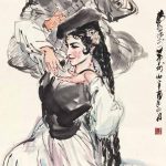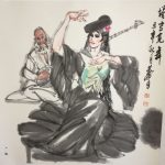 黄胄边疆题材的绘画话题丰富,抒发了黄胄对现实中的边疆风情、边疆人民的热爱之情。黄胄笔下的新疆少女等在上世纪70年代达到了其人物画的高峰。黄胄常描绘的塔吉克民族舞题材,画面上基本绘制两人,位于后方的男子奏乐或打着节拍,前面热情洋溢的维吾尔女子翩翩起舞。下面为本站藏品,黄胄作品《塔吉...
