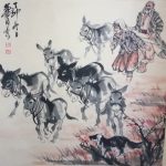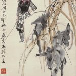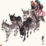 下面为本站藏品,黄胄《赶驴图》,4尺。是幅《赶驴图》创作于1987年,与70年代相比,这件作品多了几分豪放和潇洒的成分,笔墨上更加自由奔放;而其构图和表现上,则更加丰富多彩。这当然源于他长期写生的结果。《赶驴图》即是表现西北新疆风情的绘画,从风格上看,是属于黄胄晚期作品中的精品。...