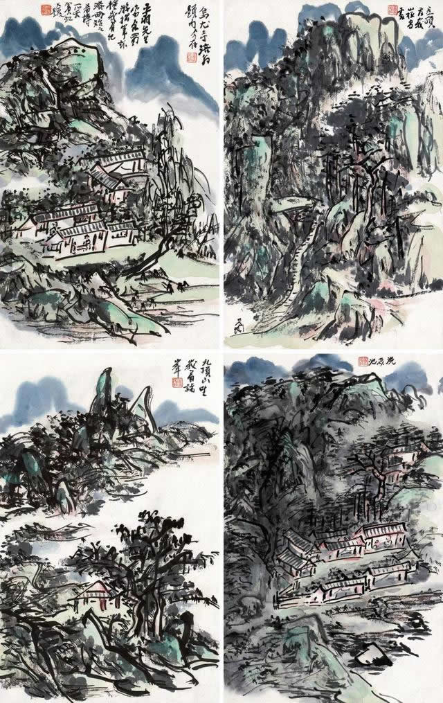 潘天寿指画《晴霞》, 四屏通景且首次面世!