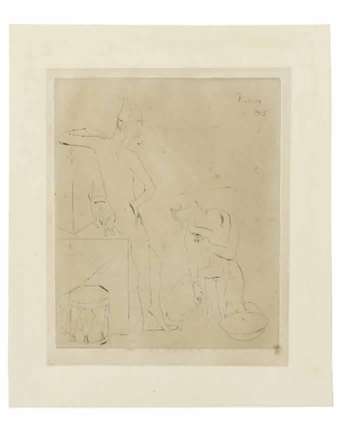 此系列鲜有完整释出于市,较为难得,当中包括毕加索最重要版画作品之一《俭朴的一餐》。此作刻画对波希米亚生活的感伤,正吻合艺术家其时居无定所、生活悭俭的状态。