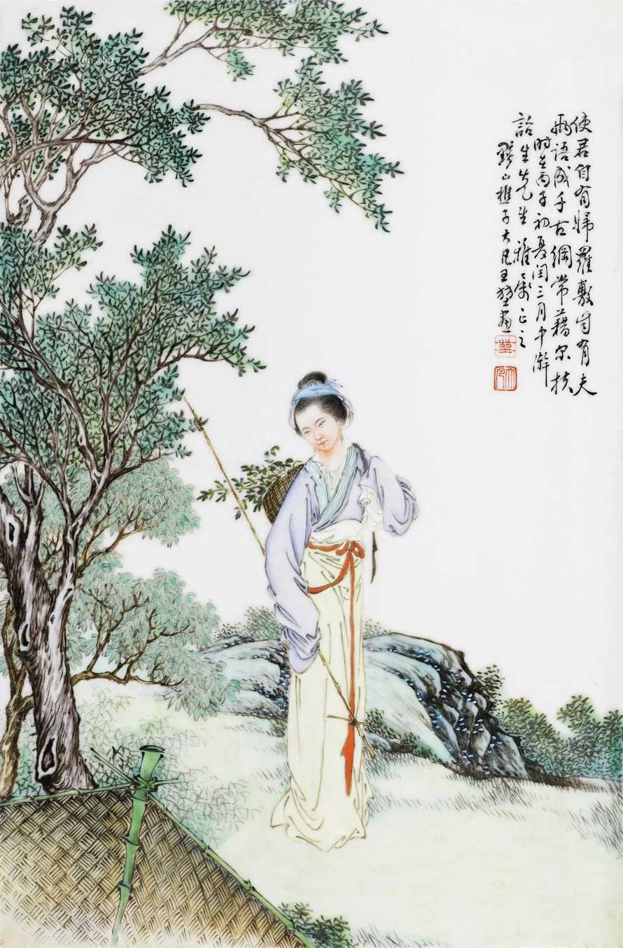 瓷板画,俗称瓷板,是指在平素瓷板上使用特殊的化工颜料手工绘画、上釉、再经高温烧制而成的一种平面陶瓷工艺品,既可装裱,也可嵌入屏风中,作观赏摆设用。谈到瓷板收藏,就必然绕不开民国时期的“珠山八友”——王琦、王大凡、汪野亭、邓碧珊、毕伯涛、何许人、程意亭、刘雨岑,以及后来并入的徐仲南、田鹤仙二人。“珠山八友”成员从事瓷画创作的年代,大约在20世纪初至20世纪60年代。由于年纪差别,“珠山八友”成员存世作品多少不一。20世纪80年代以后,珠山八友的作品逐步受到市场追捧,成交价扶摇直上,成为民国瓷器收藏中的上乘之品。