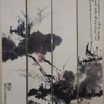 潘天寿指画《晴霞》, 四屏通景且首次面世!