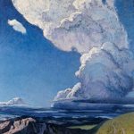 从50年代起,作者多次深入黄土高原地区,致力于表现黄土高原劳动人民的战斗与生活。《密云》是一幅表现黄河船夫与恶劣的自然条件进行英勇抗争的生动画面。乌云滚滚、浑然一体气势的表现,浓黑中少许亮色的运用,不仅突出了画眼和铁铸般的脊梁,也强化了作品雄浑之力。 钟涵《密云》 创作年代:19...