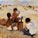 周正油画《麦收》,创作年代:1960,规格:77.3×88.2cm,材质:布面油画 周正,1934年生,画家、美术教育家、理论家。中国美术家协会会员、中国美术教育研究会会员。江苏省苏州人。