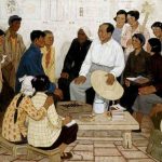 赵友萍《听毛主席话》,创作年代:1964,规格:111.5×160cm,材质:布面油画 赵友萍(1932-)祖籍黑龙江依兰。1949年考入中央美术学院,师从徐悲鸿、吴作人、艾中信等名师,1953年毕业后入研究班学习,1955年毕业。毕业后留校任教近四十春秋。中国美术家协会会员,中...