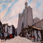 赵以雄《皮山粮食巴札》,创作年代:1980,规格:52×52cm,材质:蔴布 1934年生。北京人,1955年考入中央美术学院油画系。1956年去石家庄毗庐寺临摹壁画。1958年在模式口法海寺临摹壁画。1959年去四川西部雪山、草地沿长征路线写生,收集文物,创作油画《过雪山》,为...