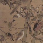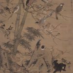 边景昭《三友百禽图》(台北故宫博物院藏),为边景昭精品,画中松竹梅三友上百鸟云集,隐喻百官朝阳之意,充满吉祥如意的喜气。所绘鸟千姿百态,顾盼有致,仿佛鸣声婉转,绕树三匝。画面生机盎然,用笔细谨入微,发扬院体的严谨工整的风格,整个画面繁而不乱,组织有序,是边氏得力之作。 △边景昭《...