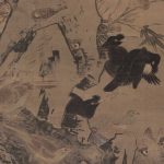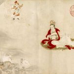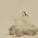 丁云鹏《五相观音图》纸本设色,28.58 x561.34cm,美国纳尔逊-艾金斯艺术博物馆藏。画家画出了观音的五种相貌,但都是高髻白衣,面相慈善,或坐,或立,或手执花篮,都为委婉女子形象,但最后一相画家笔下的观音是位苍老严肃、身著白衣的妇人,其坐在靠海的山岩中静心修佛。 △明 丁...