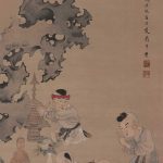 陈洪绶《戏婴图》除太湖石用较粗的笔勾画,玲珑剔透,轮廓线多呈弧状,尖利而挺拔,佛像及人物全用细劲的线条画出。层次细腻,风格典雅,设色明丽温和,技法纯熟,神形兼备,富有情趣。 △ 明 陈洪绶 戏婴图 纸本150×67.3cm 图中绘一玲珑剔透的巨大湖石,石前置一瓦制小塔,...