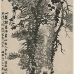 据画家自题,此图参用了篆、隶、草三体的书写技法来描绘松树,落笔圆浑滋厚,与作者的书法风格同一格调。树干、枝条、松针以草书笔法表现,秉承了文人画豪放洒脱的传统。画上行书落款笔力雄健遒劲,其金石韵味与松木的画法相映衬,意趣横生。此幅不愧为赵之谦以金石、书法入画的代表作。 《墨松图》轴...