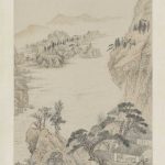 图绘双松虬结的庭院内梅、竹互映,房舍错落,屋内高士观赏秋菊,其品菊的举止生动传神,点明了“对菊”的画作主题。庭院外是迂回盘桓的山峦和自远而近的江水,它们为高士远离世俗的隐居之地平添了几分清幽。此图与石涛贯有的笔墨雄健纵恣、豪放洒脱的画风不同,刻画工整细腻,或徐或疾的笔致和富于节奏...