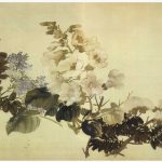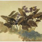此《天竺水仙图》又名《群仙祝寿》。图绘天竺、水仙。构图颇具匠心,水仙顺坡生长取斜势,而参差错落的天竺直、斜之姿兼备,使画面富于变化,情趣盎然。水仙的叶片以墨笔勾线,石绿填色,浓厚的色彩增添了鲜活的生机;高挑的天竺则以写实手法点染而成,其艳丽的嫣红色与水仙的绿色形成冷暖色调的对比,...