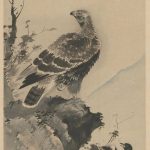 图绘一只苍鹰独立岩顶,两只飞舞的蜜蜂吸引了它的目光,一旁的喜鹊趁机振翅欲逃。作者用笔粗阔,富有简率纵逸的笔墨意趣。吕纪的花鸟画不仅追求形似,更善于表现禽鸟之间的关系,捕捉住禽鸟瞬间的神态和动势,营造出千钧一发的紧迫感和爆发力,突破了传统花鸟画唯美的装饰意味,从而获得了新的艺术生命...