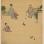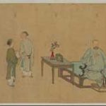 《王原祁艺菊图像》卷,清,禹之鼎作,绢本,设色,纵32.4cm,横136.4cm。本幅款题“廣陵禹之鼎敬寫”。钤“慎齋禹之鼎印”、“广陵囗囗”。 此图是禹之鼎在京城官任鸿胪寺序班、供奉畅春园时为王原祁所画的肖像。画中描绘王原祁于庭院内品茗赏菊的情景,以表现其文人雅趣。画中王氏方面...