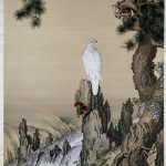 在《嵩献英芝图》这件作品中郎世宁充分展示了他扎实的素描基本功和利用明暗来表现凹凸立体效果的本领。画面正中是一只兀立于石上的白鹰,鹰首转向画的右侧,鹰目炯炯,利喙弯曲,鹰爪紧紧抓住石头。画面的右边是一棵弯曲盘绕的老松,苍老斑驳的树干和前后掩映的松枝仿佛可攀可抚,一棵藤萝攀绕着松树枝...