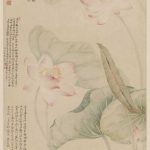 此图是唐炗(音光)与恽寿平联手为祝王翚40岁诞辰所作。唐炗绘荷花,恽寿平画荇藻。荷花与荇藻皆采用了没骨法,透露出轻盈飘逸与湿润的感觉。微风中,仿佛莲叶与荷花的清香淡淡而来。水塘里荇藻则用一笔点画。状物形神兼备,风格清新淡雅。 《红莲绿藻图》轴,清康熙十年(1671年),唐苂、恽寿...