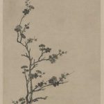 此幅《墨梅图》以枯笔焦墨画梅花枝干,皴擦纹理,表现梅枝苍劲虬曲的姿态;以浓淡相间的水墨点画花朵,以谨细之笔画出花蕊,笔法刚健清逸,表现出梅花清丽脱俗的风貌。画面中间的梅花风姿绰约,右上的题诗洒脱清秀,左下的印章工稳典雅,三者浑然一体,相得益彰。 《墨梅图》轴,明,唐寅绘,纸本,墨...
