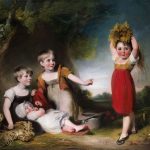 威廉·欧文(1769-1825),英国肖像画家,是著名画家托马斯·劳伦斯爵士的当代对手。他为威廉·希思考特爵士孙儿女们画的肖像画,运用了一种不同寻常的自负,展示了一个富有的男爵的孙子女们打扮成山寨的儿童。成捆的小麦暗示着收获。 【规格】140.3×171.5cm 【年代】1806...