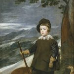 《身穿猎装的巴尔塔萨·卡洛斯王子》是西班牙印象派著名画家委拉斯开兹在1635年所绘制的一幅人物肖像油画,目前,该画作已被普拉多博物馆所收藏。这幅油画的版式很长,画中的卡洛斯王子穿着灰色绣花衬衫和带袖子的深色斗篷,衣领处还有蕾丝领子,往下看,他的宽马裤下是一双及膝的长靴,手里还拿着...