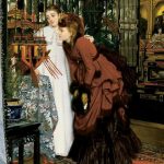 《注视日本艺术品的年轻女子》是新古典主义画派的代表男画家詹姆斯·迪索于1869年所绘制的一幅布面油彩画,这幅画的选材是风俗画,主要以写实的造型、学院派的严谨著称。在这幅画中,两个女郎在日本艺术品面前的欣喜情景跃然纸上。在繁复而又凝重的背景前,她们的红、白衣服被突出出来,她们面容俏...