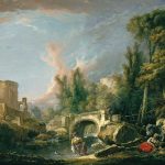 《有废墟和桥的河流景观》是弗朗索瓦·布歇所创作的风景题材的油画。这幅油画描绘了一幅宁静而美丽的河景。画面中心是一座古老的石桥,桥下是一条宽阔的河流。桥的两侧是郁郁葱葱的树林和一座废墟。整个画面给人一种宁静和恬静的感觉。布歇运用了柔和的色彩,主要以浅绿色和淡黄色为主调,给人一种温暖...