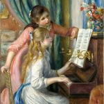 《钢琴前的两个年轻女孩》是画家雷诺阿在1892年所绘制的一幅人物题材的油画。这是一幅充满温馨与和谐气氛的肖像画,它描绘了两个认真阅读钢琴谱的女孩,一个坐在钢琴凳上抬头仰视,一个站在旁边一手撑在椅子上,胳膊放在钢琴上低头看琴谱。在构图上,这幅画精美而富有层次感。两个女孩的姿势和人物...