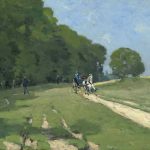 《库朗塞公园附近的小路》是法国画家西斯莱在1868年所画的一幅风景题材油画。在这幅作品中,艺术家以细腻的笔触和柔和的色彩勾勒出了一个宁静而优美的场景。画面中的小路蜿蜒曲折,两侧的树木枝叶交织,形成了一个绿意盎然的隧道。树木和草地的色彩鲜艳而富有层次感,给人一种和谐与活力的感觉。 ...