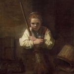 《拿扫帚的女孩》是伦勃朗在1640年所绘制的一幅人物肖像油画。这幅画展现了一个年轻女孩身穿宽松的服装,手持一把扫帚的场景。画中的女孩面向观众,她的表情似乎有些困倦和疲惫,但却透露出一种内心的坚定和决心。伦勃朗在这幅作品中运用了精湛的绘画技巧来刻画女孩的形象。他通过饱满的色彩和光影...