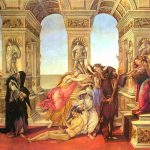 《阿佩莱斯的诽谤》是波提切利在1496年所画的一幅油画。该画作是一幅极具戏剧性和连贯性的画作,它根据希腊作家卢西安对画家阿佩莱斯的一幅失传作品的描述而绘制。画中描绘了众多人物,表面看上去人物动态摇摆、散乱,但实际上波提切利在构思的过程中依然十分重视画面的连续性,通过人物的手势、眼...