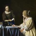 《太太和女仆》是维米尔在1667年所画的一幅油画。画面的构图简洁明了,以房间的一个角落为场景,生动地描绘了两个女性形象——太太和女仆。太太坐在桌子旁,而女仆则立在太太的身边,两人的对话神情分外传神。维米尔在这幅画中运用了明暗对比和色彩对比的手法,以强调两个角色的不同身份和情感。太...