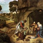 乔尔乔内(1477-1510),原名乔尔乔·巴巴雷里·达·卡斯特佛兰克,意大利文艺复兴时期著名的意大利威尼斯画派画家,是第一个真正意义上的意大利威尼斯画派画家,架上画的先行者。 △乔尔乔内《牧羊人的朝拜》91×136cm 《牧羊人的朝拜》此画描绘一个阴沉的洞窟前,有一位圣母,她身...