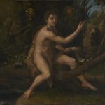 《施礼约翰在旷野》是拉斐尔晚期创作的杰作之一。这幅画作于1518-1519年期间完成,现藏于佛罗伦萨的乌菲兹美术馆。画面中的圣约翰神色庄重,手持经书,身着毛皮,脚踏凸起的石块,头戴十字架。画面中的山水、树林、景物繁多,构图丰富。拉斐尔巧妙地运用线条和色彩,营造出一种神秘、庄严、高...