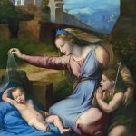 《圣母与蓝色王冠》是拉斐尔·桑西在文艺复兴盛期的1510年所创作的一幅宗教画。尽管这幅画作是具有宗教色彩的,但却流露出人世间幸福、美好的情感。圣母侧身而坐,目光注视着两个正在嬉戏的孩子,给人以无比温馨的感觉。此外,画面中线条柔和、远景优美,天空中几朵轻盈的白云映照着柔和的微光,让...