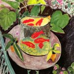 马蒂斯《金鱼》作于1912年,现藏于普希金美术馆。在画面结构和色彩的运用上明显地受到东方艺术的影响,他致力于百追求富有力度的线条与鲜明色彩的协调。马蒂斯喜欢画金鱼,他的多幅画作中都有金鱼的影子,比如1912年创作的《金鱼》《工作室里的金鱼》,1913年创作的《阿拉伯咖啡馆》,19...