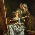 作为史上201位值得铭记的杰出艺术女性之一,吉亚尔在绘画,建筑和培养人才等方面做出杰出的贡献。她的传世名作虽然不多,但从这幅画上看,吉亚尔是个美女画家,面容清婉可人,眼神清澈如水,衣着打扮时尚,帽子上的羽毛以及用光滑绸緞做成的裙子都非常完美。后面站着的两位学生专注又可爱,构成了整...