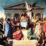 《荷马被神格化》作于1827年,现藏于巴黎卢浮宫。此画作是安格尔向古典主义致敬的作品,是新古典主义的佳作,也是学院派绘画无法逾越的典范。1826年官方授命安格尔绘制这幅画,以装饰卢浮宫的查理十世博物馆的天花板。画作所要表达的主题是对荷马的崇高礼赞,带有较为浓厚的历史、宗教和神话色...