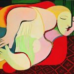 《梦》是毕加索于1932年绘制的抽象肖像画。当时,47岁的毕加索与长着一头金发、体态丰美的17岁少女初次相遇,从此,这位少女便一直成为毕加索绘画和雕刻的模特儿。《梦》这幅画作可以说是毕加索对精神与肉体的爱的最完美的体现,它非常简洁,毕加索只用线条轮廓勾出女性人体,并将其置于一块红...