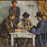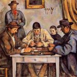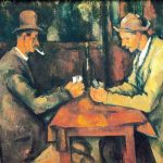 此画为画家重要的代表作之一,画中描绘着两位玩纸牌的农民,细致地刻画出两个农民玩牌时用心思考的面部表情和弯曲的肩膀,十分生动地表现出人物的内心世界与性格特征。画家在安排布局人物与道具、环境的关系时,有意加强了轮廓线的阴影部分,并利用了不同的三角形和直角的变化,强调了棕红色调与蓝色的...